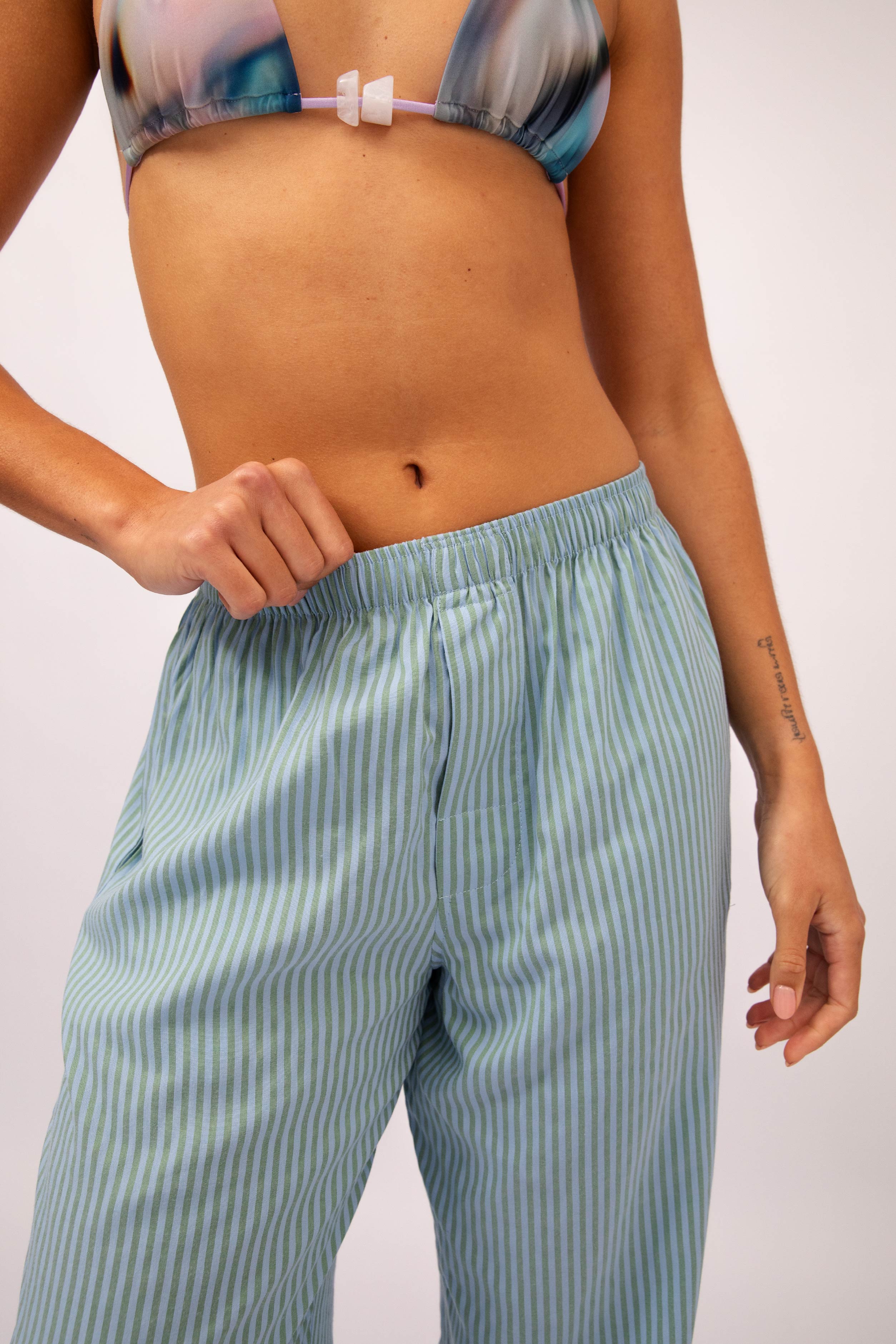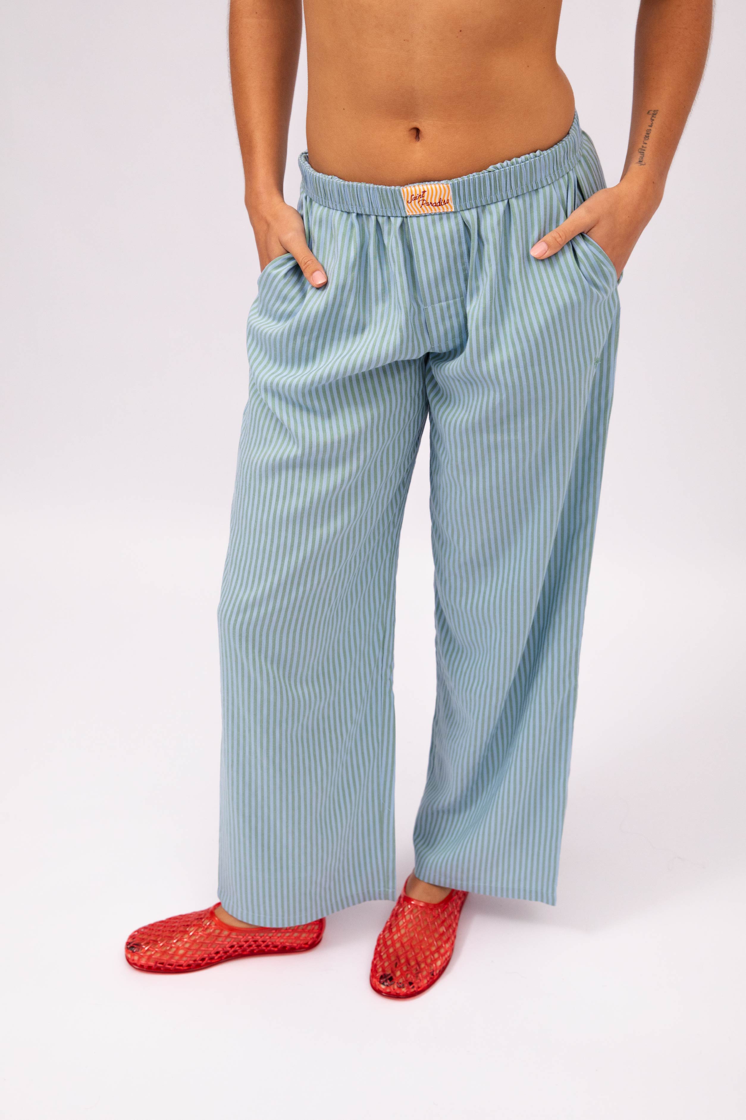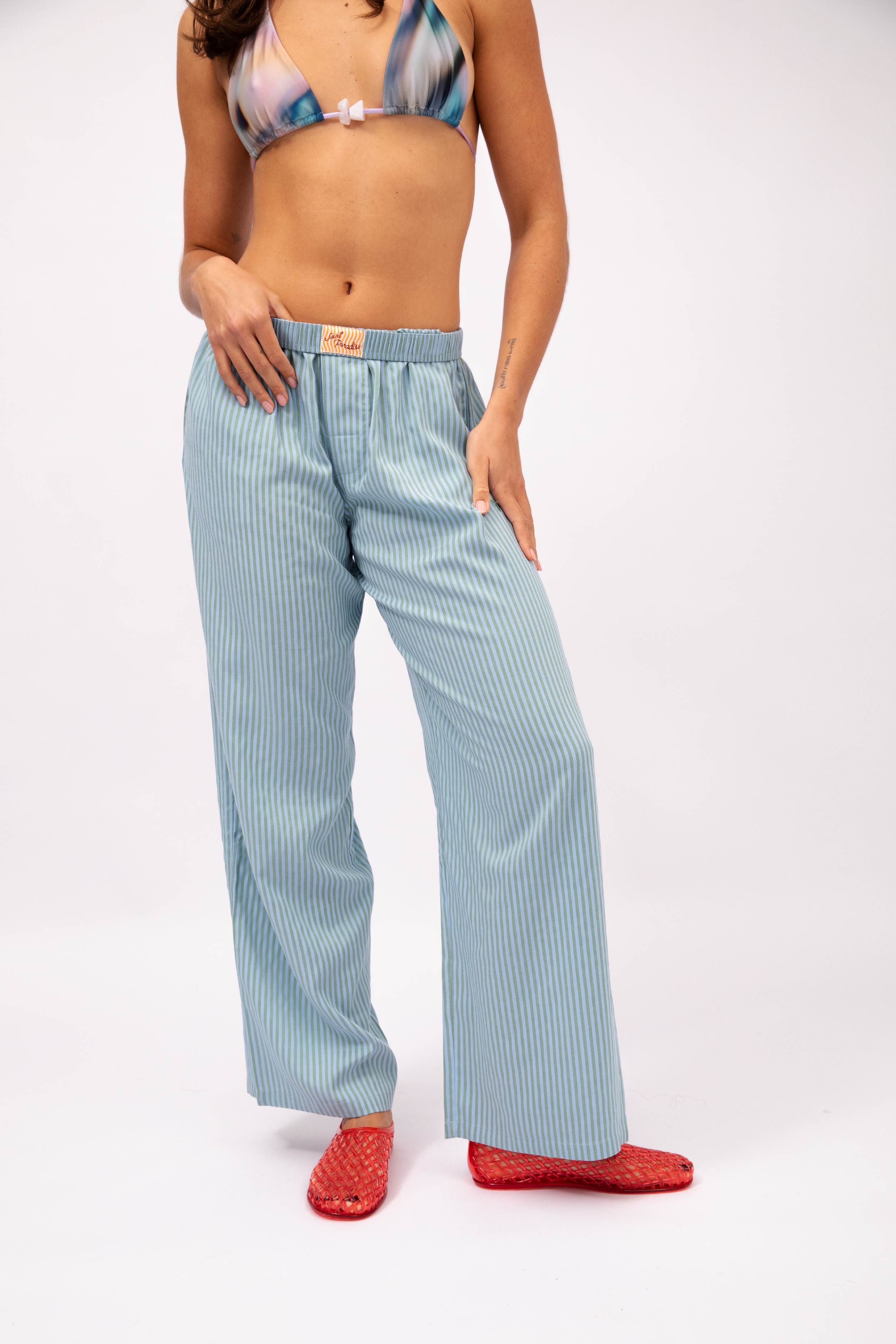 Just like our bestselling SP Boxer Pants in Passionfruit Stripe, these are made from the same softest 30% cotton 70% Polyester in our new teal and blue stripe, featuring our signature SP logo delicately embroidered on the front.