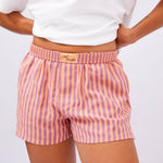 Welcoming our new SP Boxer Short, made from the softest 30% cotton 70% Polyester in a purple and orange stripe, featuring our signature SP logo delicately embroidered on the front.