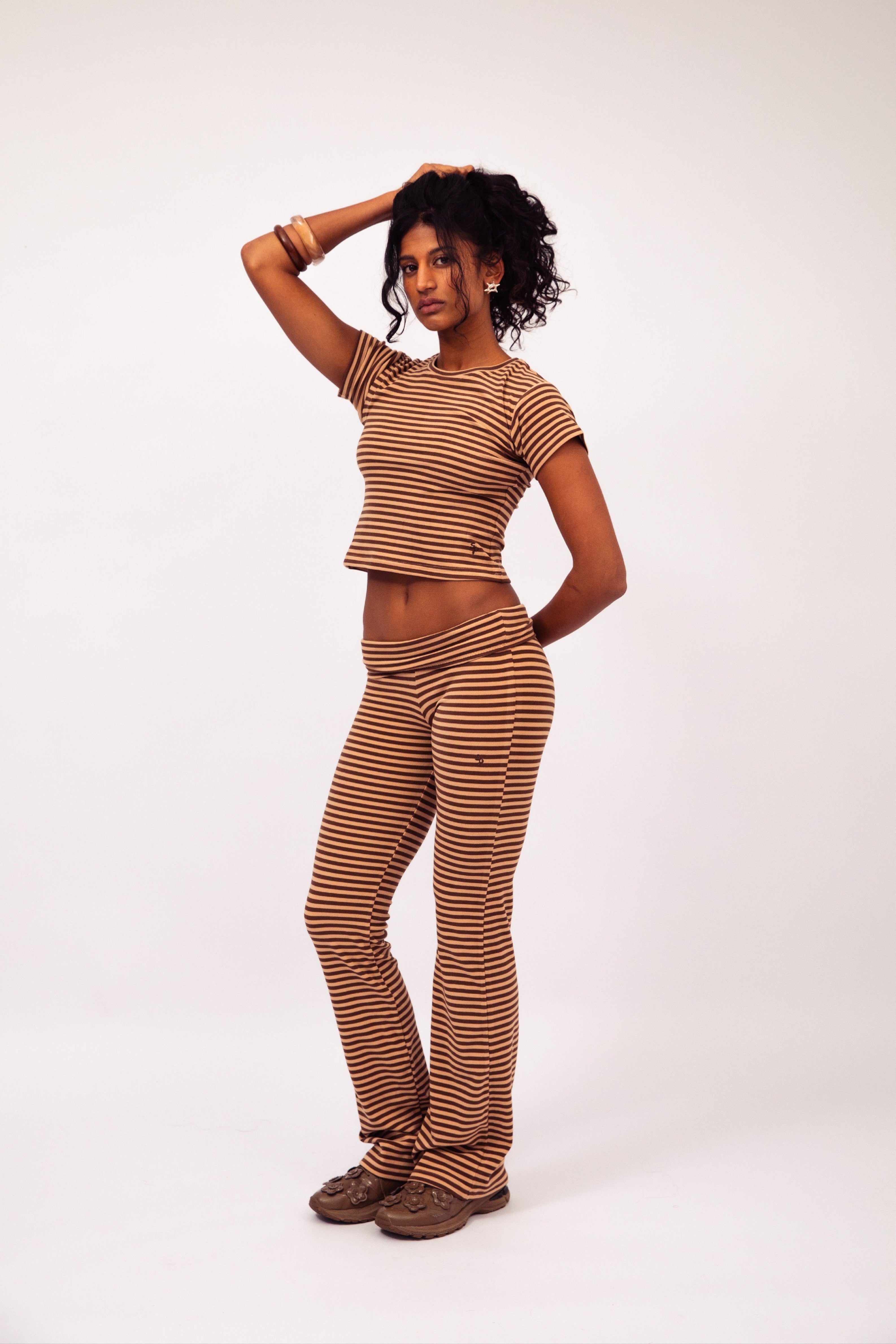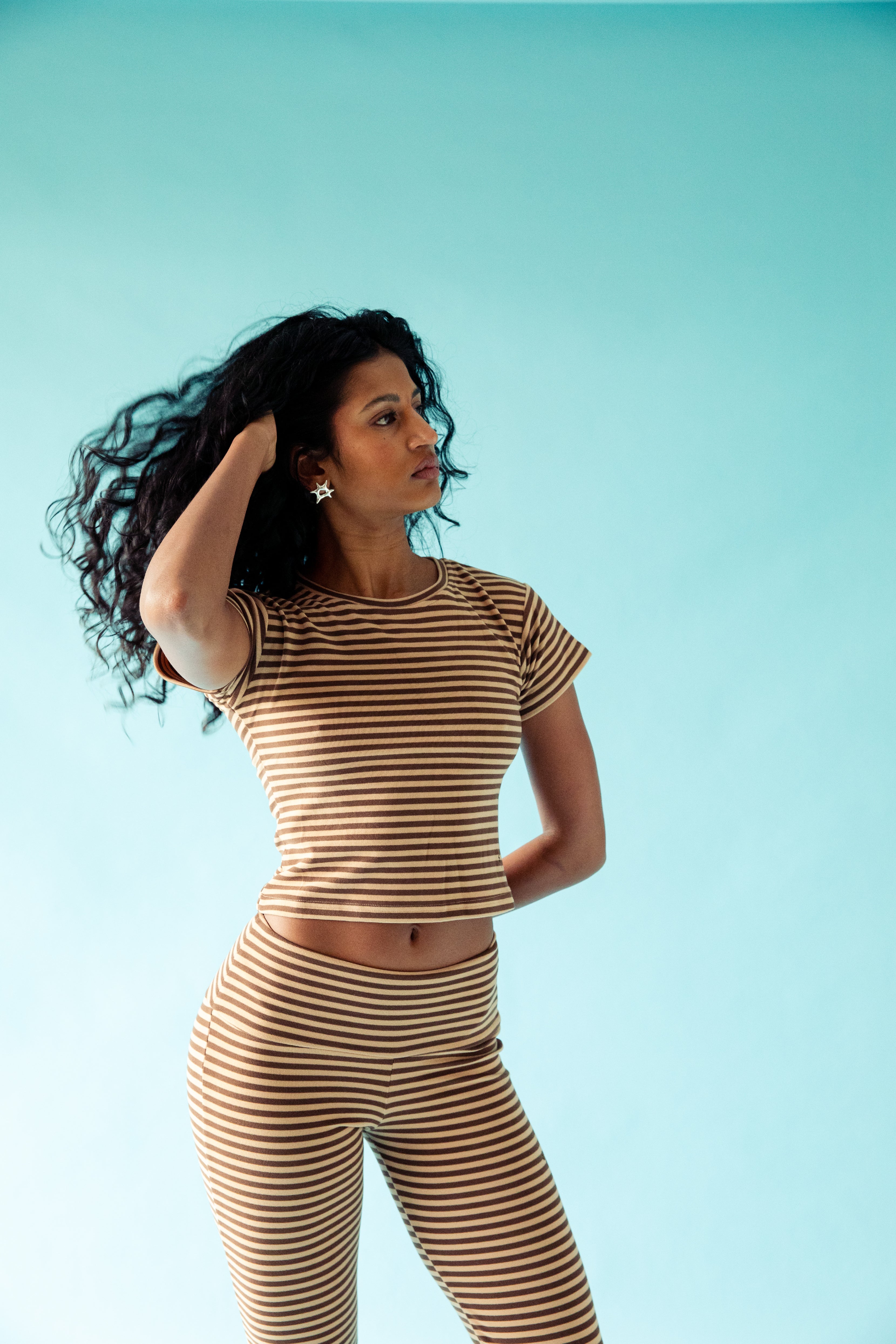 A stretchy cropped baby tee fit